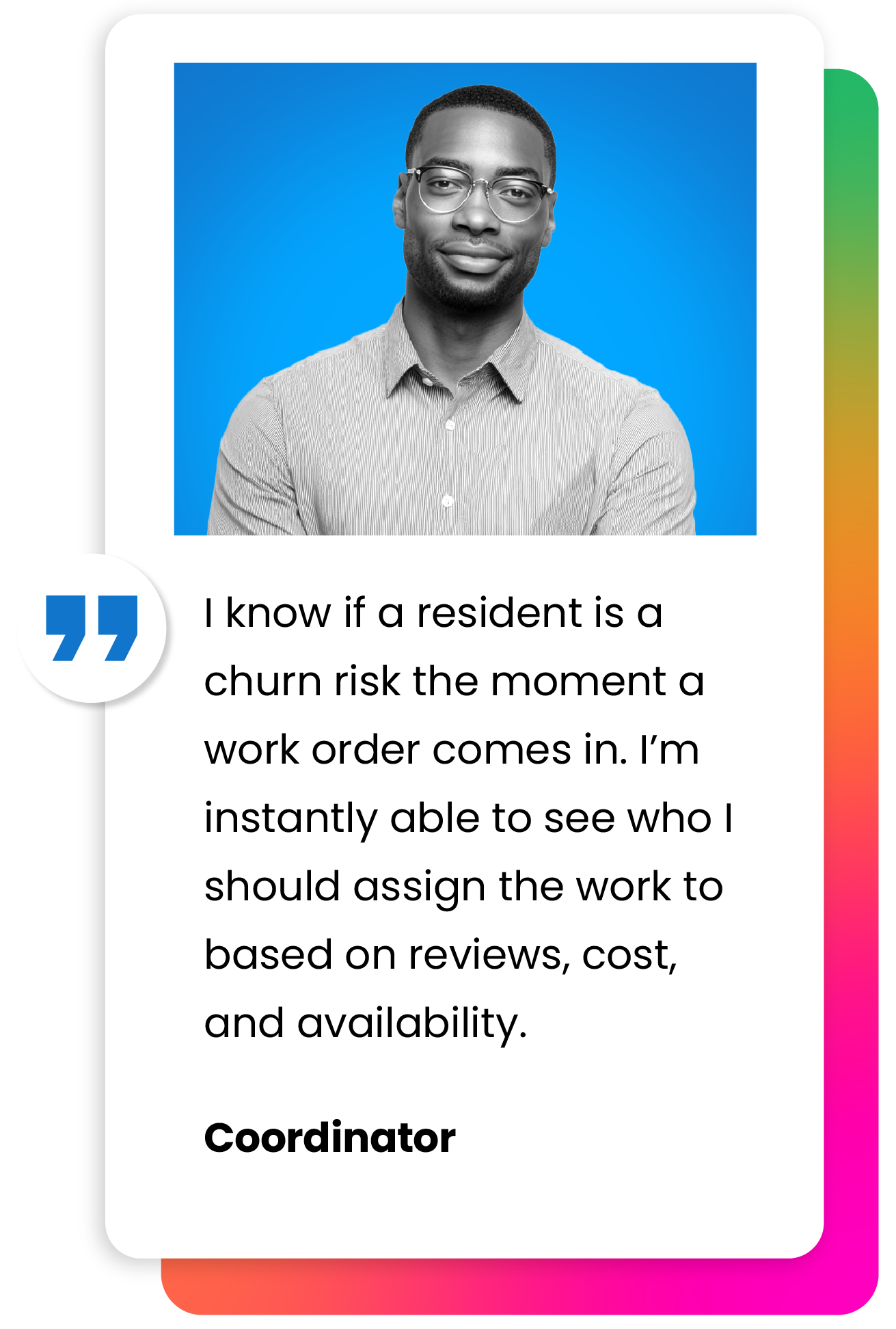 From a remote team member on day one to a seasoned Maintenance Coordinator every decision is powered by real-time insights, performance history, and resident churn risk indicators because when every choice impacts margins and renewals, your team deserves tools that make the perfect call feel obvious.