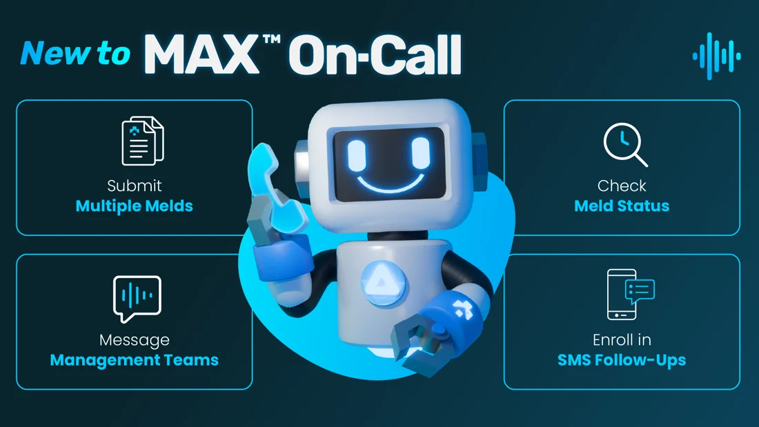 MAX On-Call allows residents to handle maintenance by phone instead of relying on chat or web forms. Through a natural conversation, MAX captures the issue and creates a Meld directly in your Property Meld account.