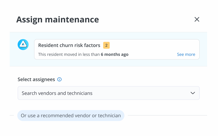 Whether it’s a VA on day one or a seasoned MC juggling dozens of work orders, every decision is backed by real-time insights, performance history, and resident churn risk indicators.